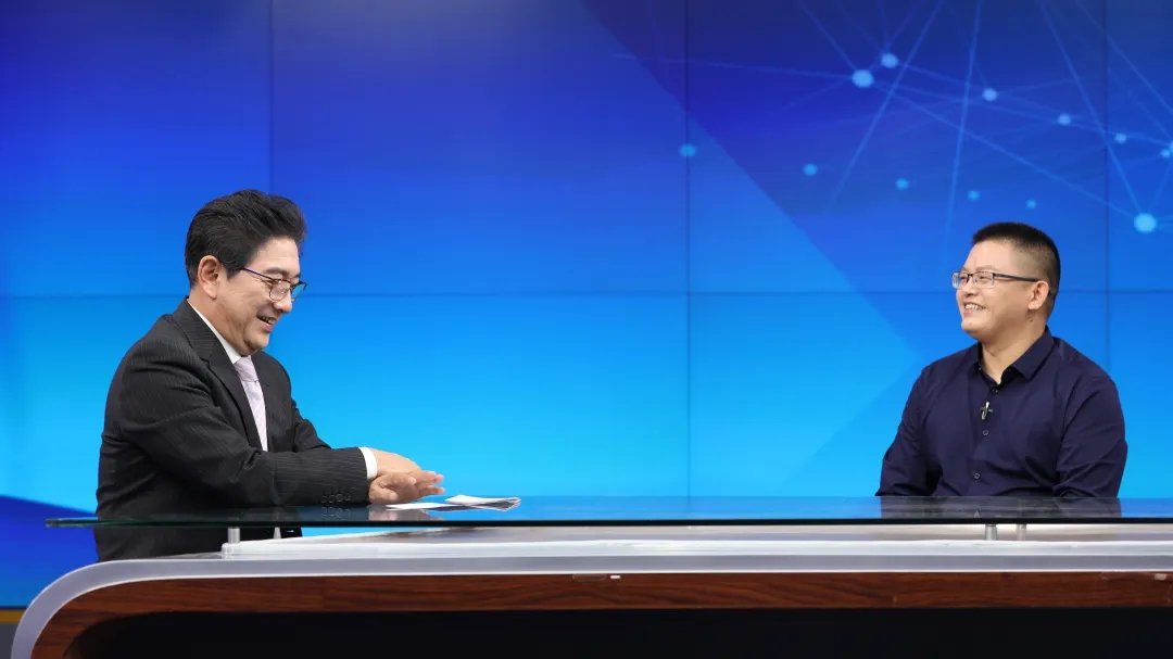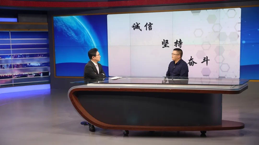 ▲聚心照明创始人张永强(右一)接受CCTV水均益(左一)访谈