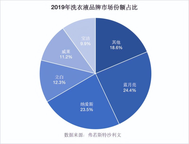 弗若斯特沙利文数据显示,2019年蓝月亮的市场份额为24.4%,仅比第二名高出0.9%,领先优势逐渐缩小。