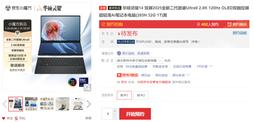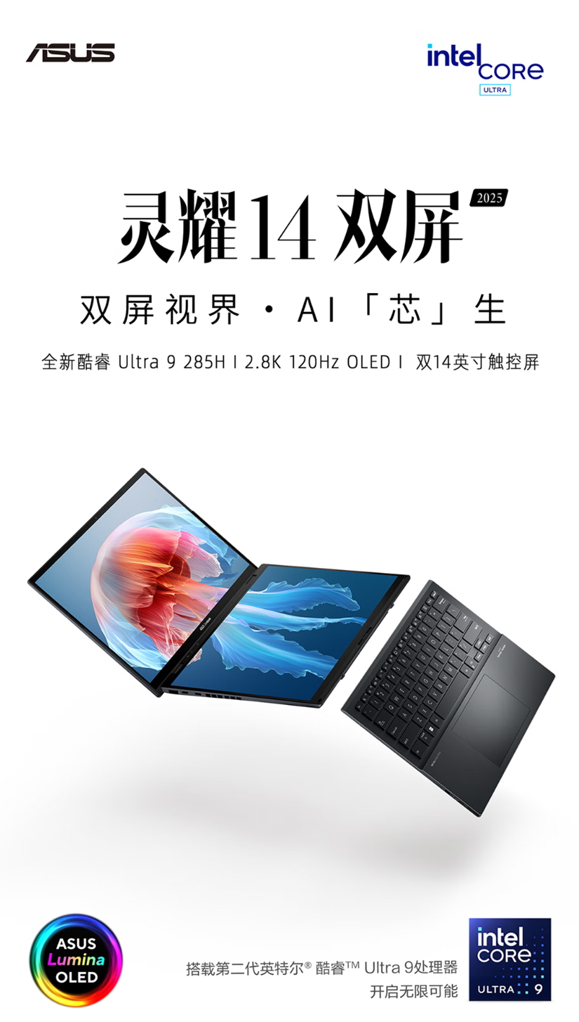 目前,华硕灵耀14 2025、灵耀14 双屏 2025、无畏14 2025(Arrow Lake)和灵耀16 Air(Lunar Lake)已开启预售。
